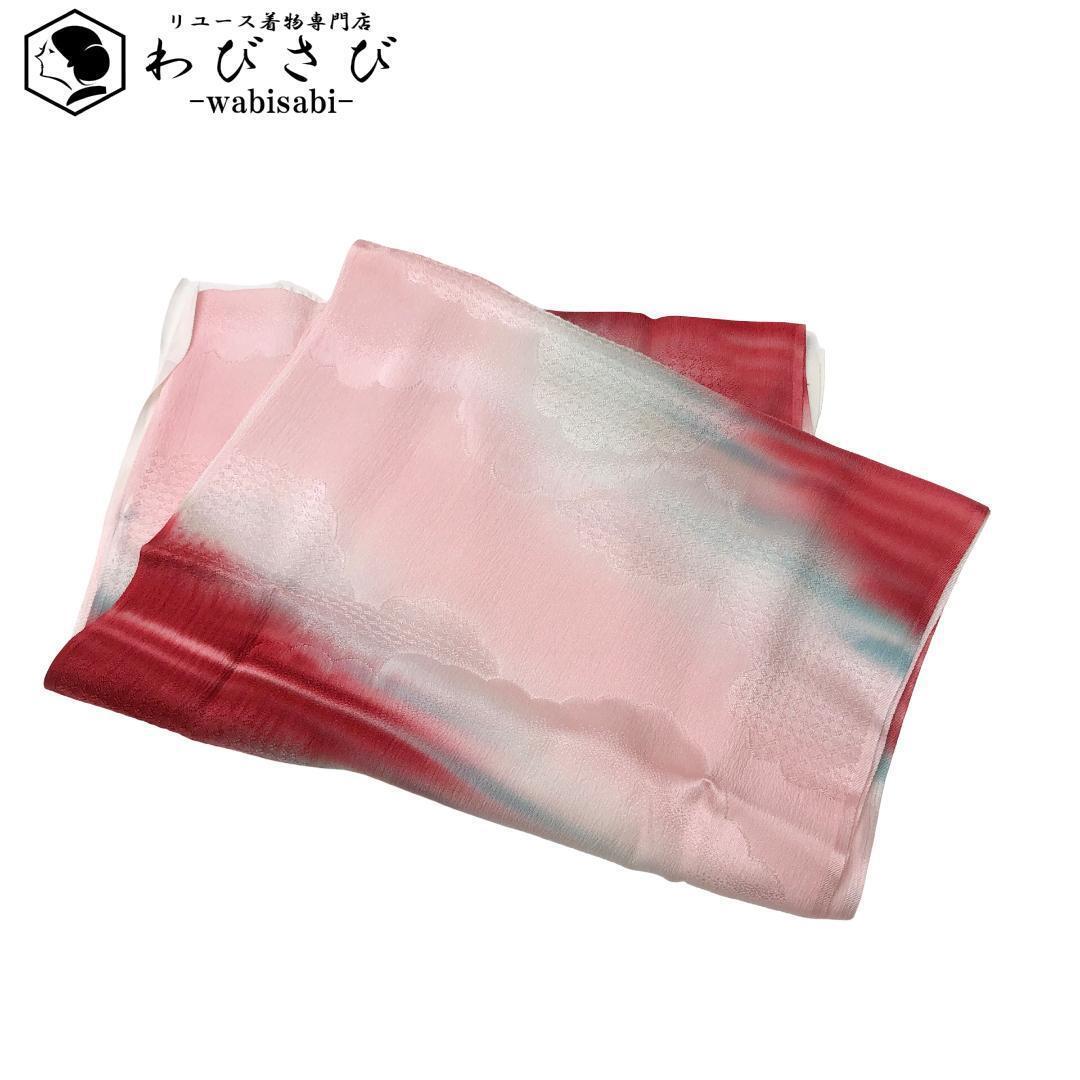 - 和装小物 帯揚げ 正絹 綸子 雲柄に暈し 乙女色 C-6445 着物 きもの kimono 和服 和装 中古 リサイクル着物 【送料無料】