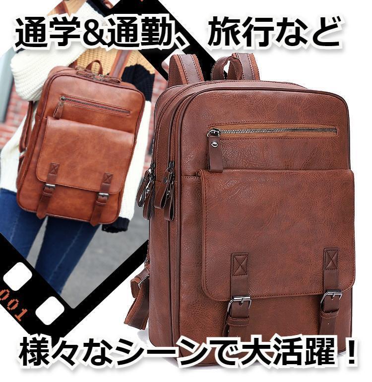 - ★値下げ★ レディース&メンズ スクエア PUレザーリュック ブラウン
