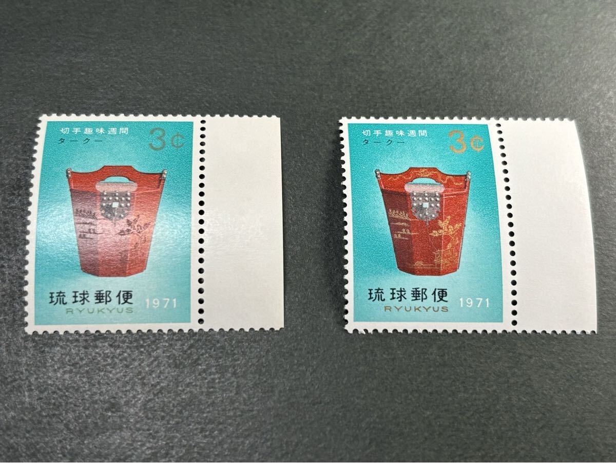 - 購入187,200円 沖縄1971年 趣味週間 タークー エラー切手 金色一色洩れ跡が濃い濃緑色 日本