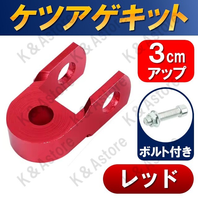 > ケツアゲキット ヒップアップアダプター ケツ上げ 車高調整 サスペンション バイク オートバイ スクーター 原付 3cmアップ レッド 赤