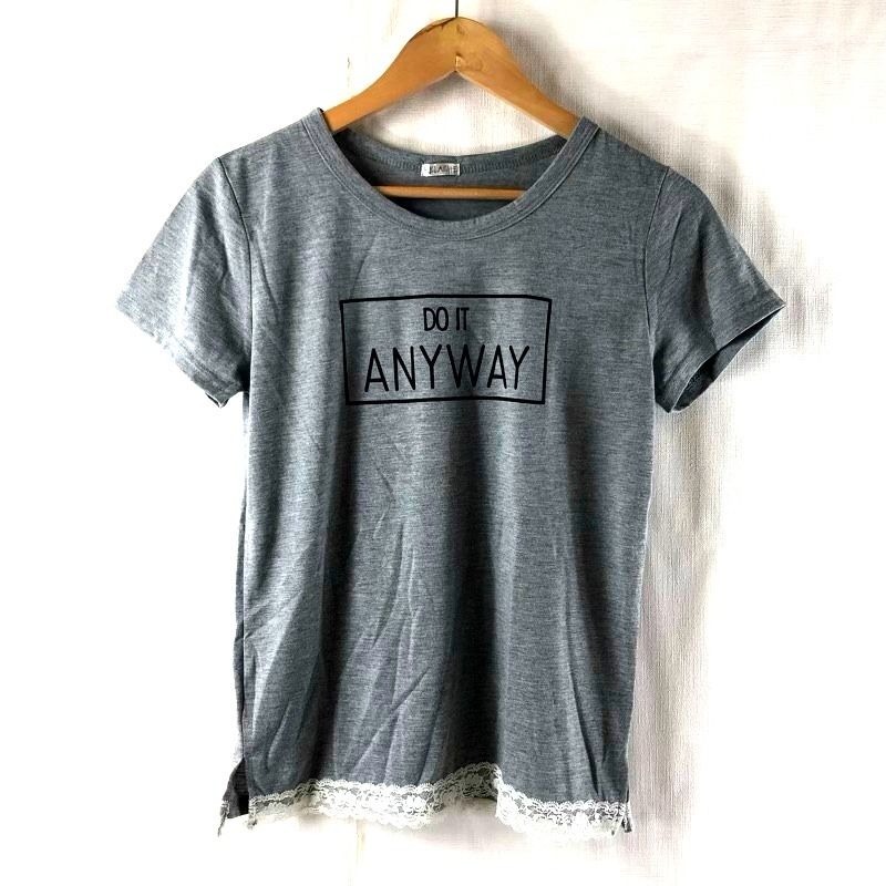 - ルラシェ RELACHE Tシャツ カットソー 半袖 裾レース 英字プリント グレー Lサイズ 2025082500277