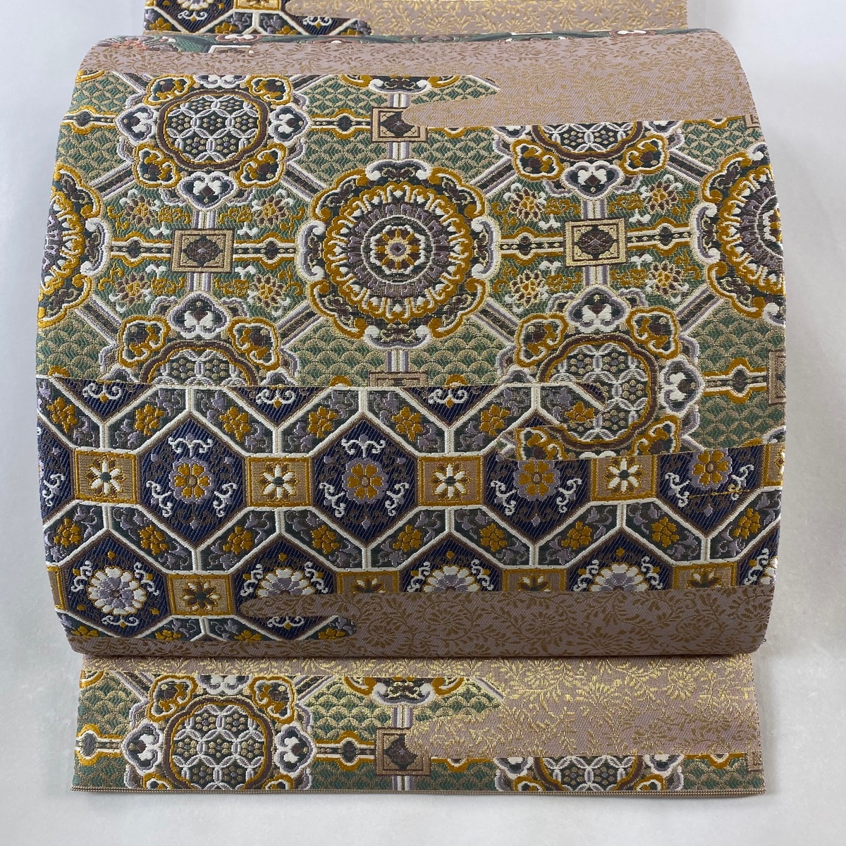 - 袋帯 美品 秀品 落款 彩織 蜀江華文 花唐草 唐織 箔 灰紫 六通 正絹 【中古】