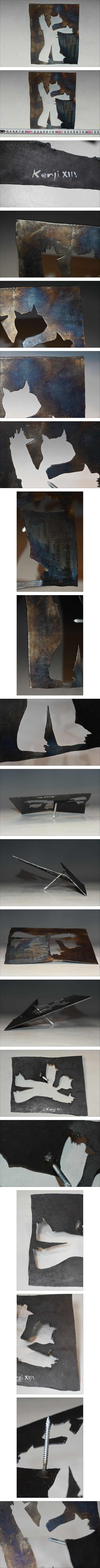 > 現代アート【ケンジ・ベルトー・スズキ】金属オブジェ 彫刻 Kenji Bertheau Suzuki 進来 French art 鉄板 金工 真作 パリ在住