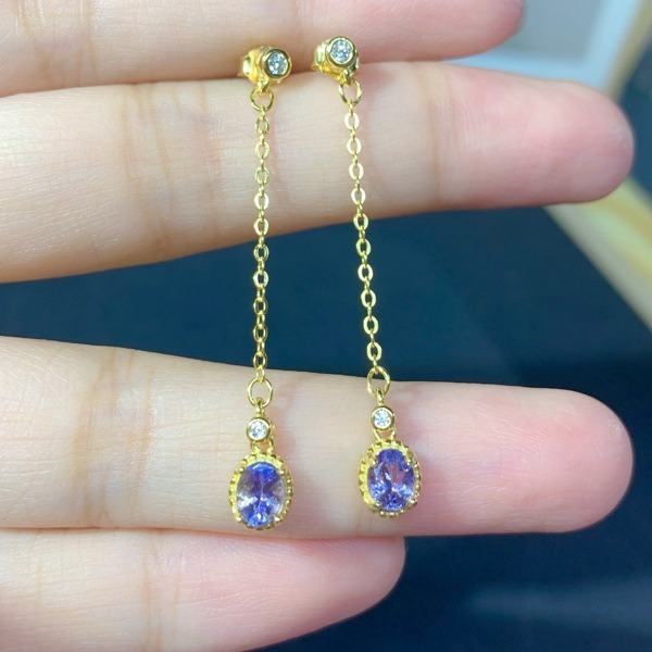 > 天然タンザナイト ピアス 鑑別付き 天然石 ナチュラル ビンテージ アクセサリー カラーストーン 宝石 Yu_6825