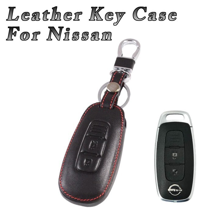 - ニッサン 本革 キーケース キーカバー セレナ アリア サクラ エクストレイル ルークス 2つボタン レザー キーホルダー スマートキー