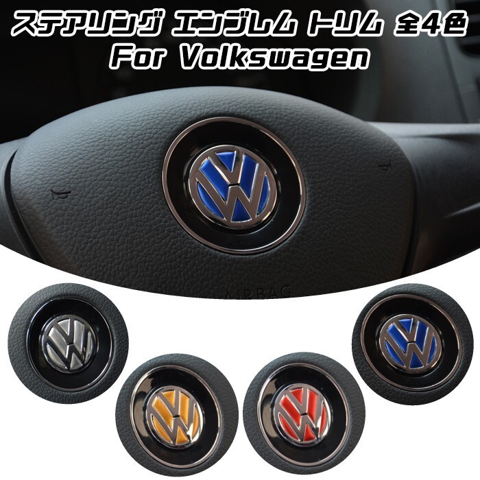 - フォルクスワーゲン ステアリング エンブレム トリム 全4色 アルミ製 ステッカー VW Volkswagen インナー アクセサリー シール