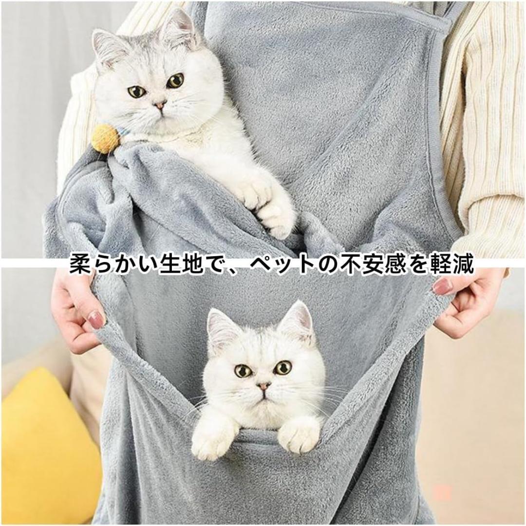 - 【猫・子犬】抱っこ用エプロン ☆グレー色☆ ポケット きゃりーバッグ ペット猫寝袋 吸水性