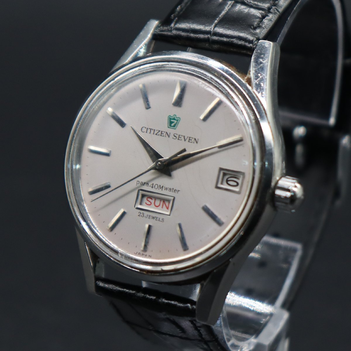 - CITIZEN SEVEN シチズン セブン SEOS51301-T 手巻 23石 パラ40Mウォータ 1965年製 動作品ジャンク デイデイト 新品革ベルト メンズ腕時