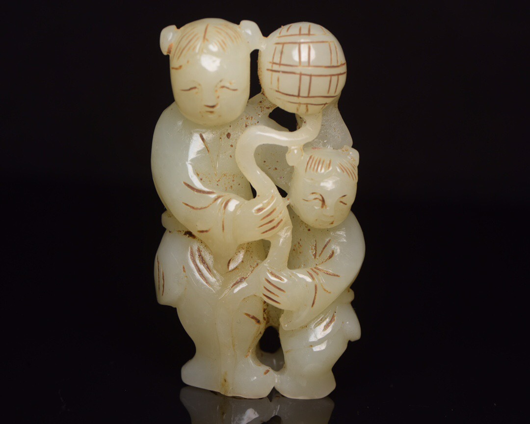 - 【超珍館蔵】和田玉製 細密彫 童子 置物 賞物 古賞物 古董品 古美術品 時代物 旧家蔵出 稀少珍蔵品