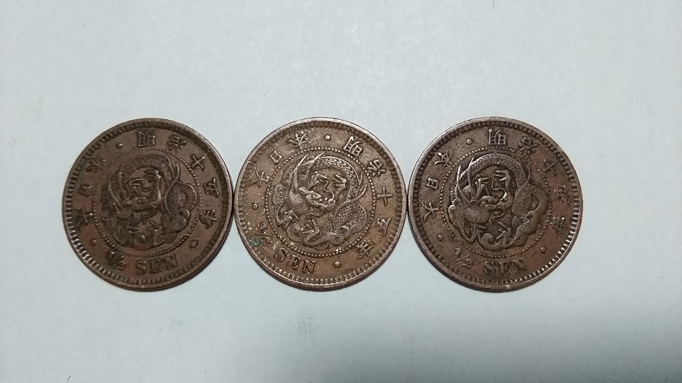 > ☆☆【旧硬貨・明治貨幣・近代貨幣】半銭 銅貨 明治15年・ウロコ3種類 銅貨幣/アンティーク 近代銭 コレクション/手変わり