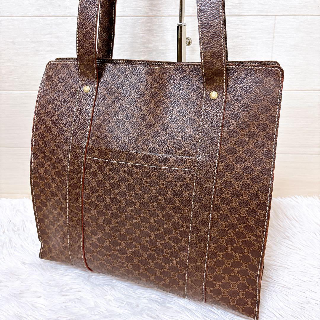 - CELINE セリーヌ トートバッグ マカダム 総柄 ブラウン 美品