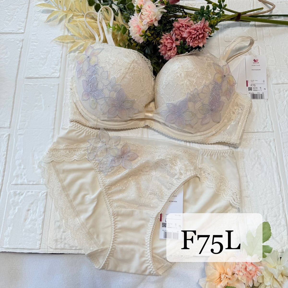 - 【新品】wacoal パルファージュ 36 リボンブラ ショーツ F75L BE ワコール parfage サルート salute