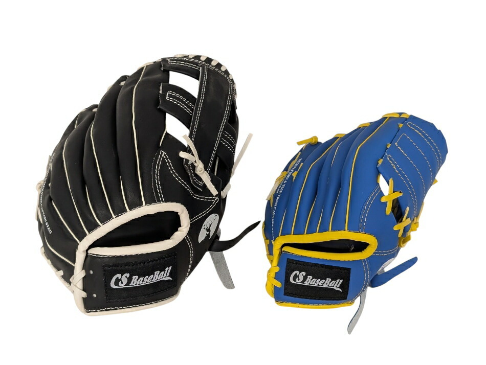 > CS BaseBall グローブ ジュニア キッズ 合皮 28cm 22cm 2個セット ブラック ブルー 野球 【中古】