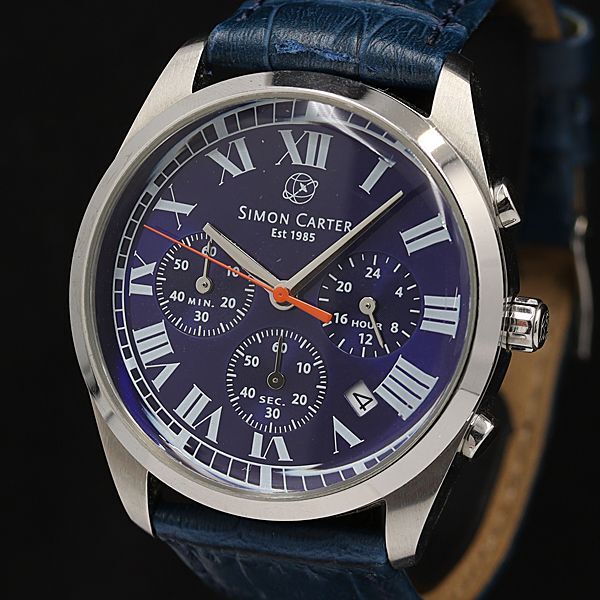 - 箱付 稼働 良品 サイモンカーター QZ クロノグラフ ブルー文字盤 デイト メンズ腕時計 KMR 2000000 NSK