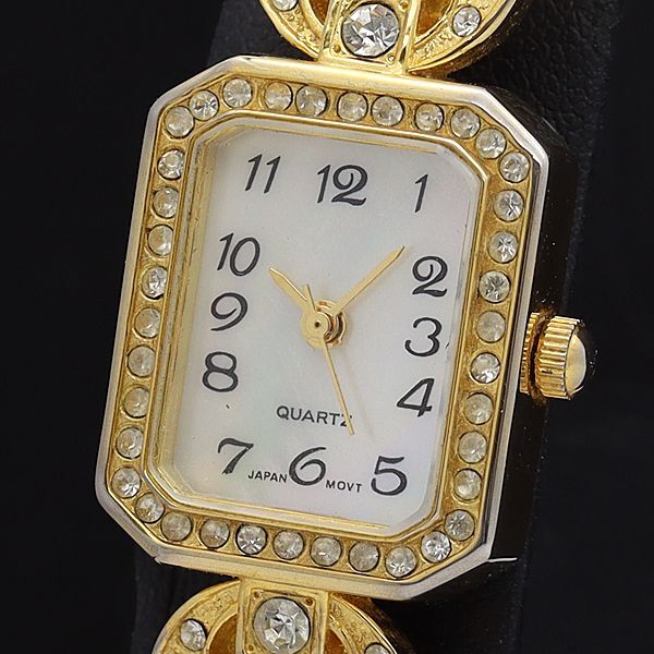 - アンティーク QZ ホワイトシェル文字盤 ストーンベゼル レクタンギュラー フェイクパールブレス レディース腕時計 IKE