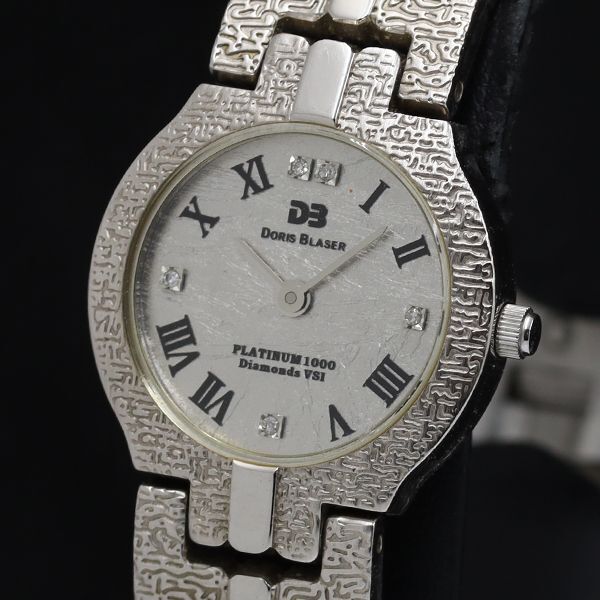 - 稼働 DORIS BLASER 9063 石付 ラウンド QZ シルバー文字盤 レディース腕時計 TKD 2000000 NSK