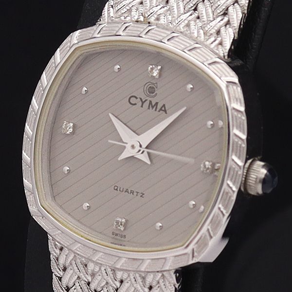 - 稼働 良品 シーマ QZ 616SP シルバー文字盤 石付 スクエア レディース腕時計 NKG