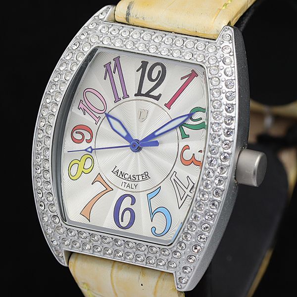 - 箱/保付 稼動 良品 ランカスター 0248 QZ 石付ベゼル シルバー文字盤 メンズ腕時計 KTR 2000000 NSK