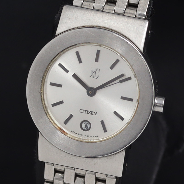 - 稼動 QZ 良品 シチズン クロスシー 9613-H18245.Y シルバー文字盤 デイト レディース腕時計 KRK 2000000 NSK