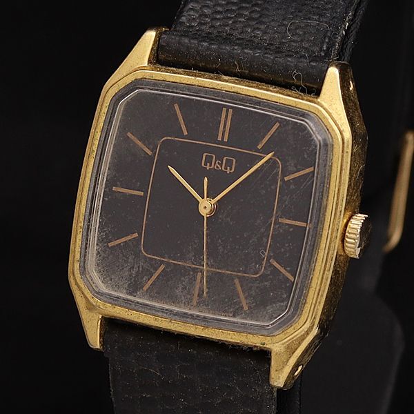 - シチズン 手巻き キュー&キュー 黒文字盤 スクエア メンズ/ボーイズ腕時計 KYM