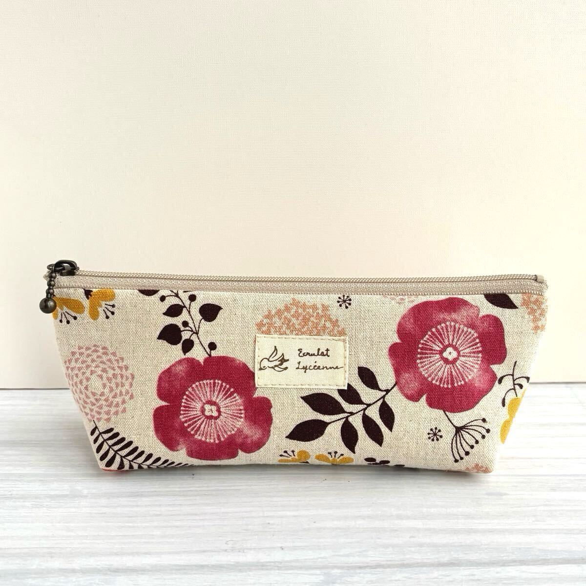 - ナチュラル フラワー ペンケース 筆箱 筆入れ マチあり ハンドメイド 文具 レトロ 大人かわいい 綿麻 コットンリネン 北欧風