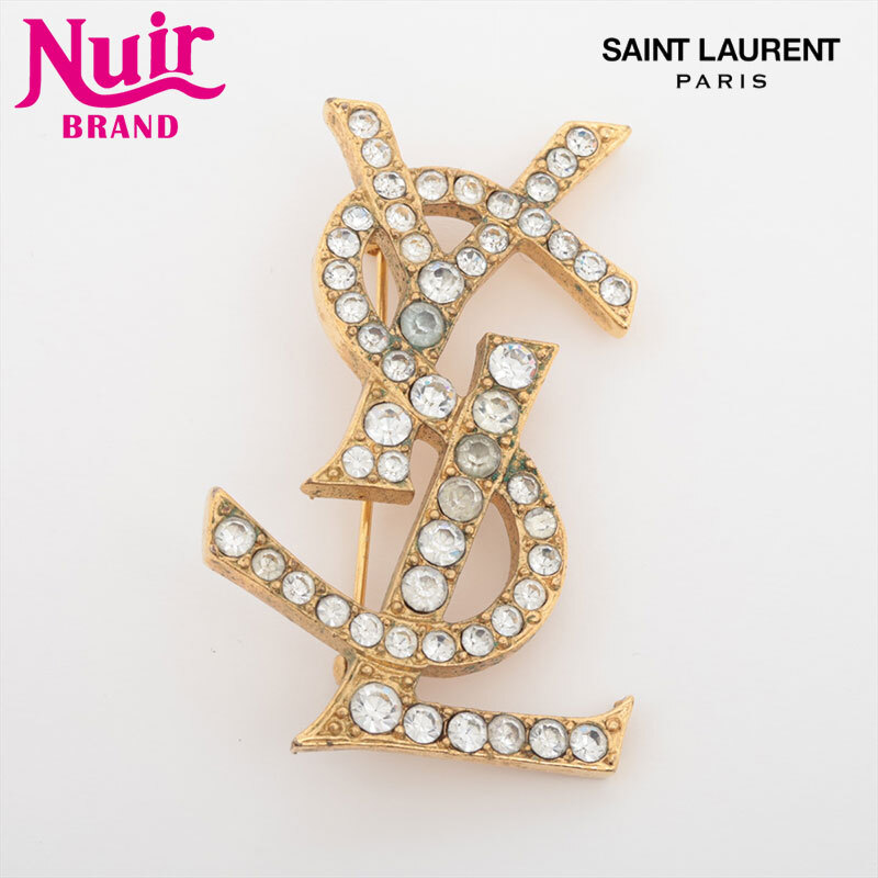 > イヴ・サンローラン YVES SAINT LAURENT ブローチ ロゴ ラインストーン ゴールド