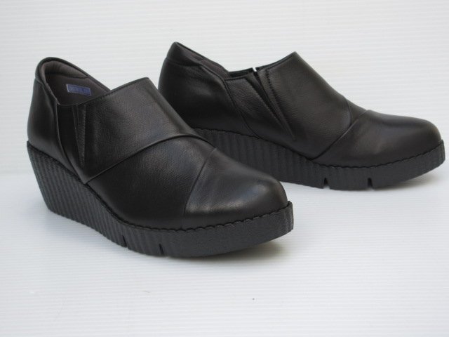 > 柔らか SPORTS NINE 116-338 黒 23.5 スポーツナイン 厚底 ウエッジソール パンプス 日本製 サイドゴア スリッポン ウォーキングシューズ