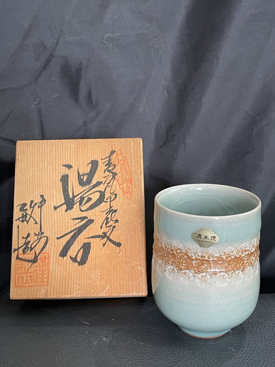 > 9.9.13. お95 060 京都伝統工芸品 未使用保管品 木箱入り 清水焼き 湯呑み 茶器