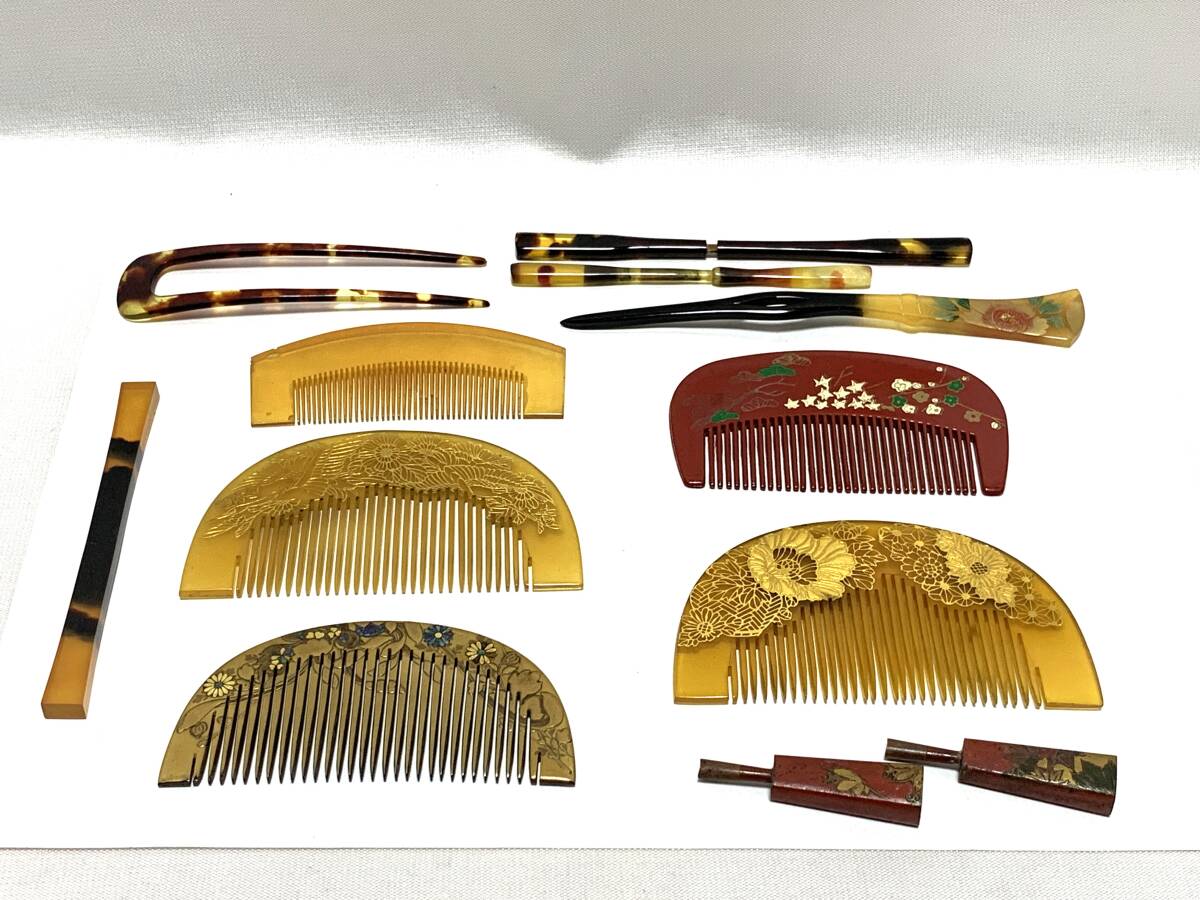 - U658 かんざし アクセサリー べっ甲 髪飾り レトロ まとめ売り 和装 金彩 花柄 金属