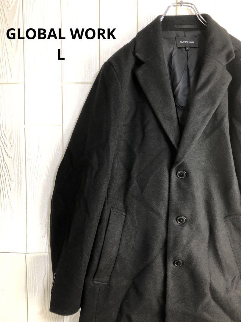 - GLOBAL WORK ブラック チェスターコート 着丈88cm Lサイズ