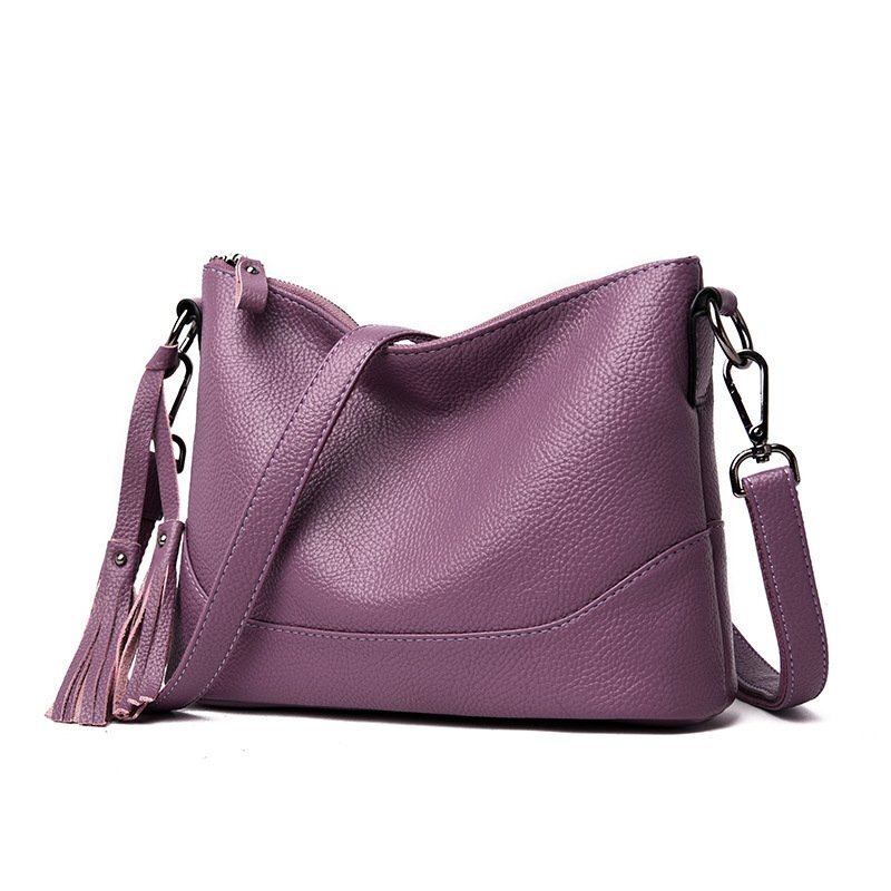 > B0215☆お色選択可 本革 牛革 100%イタリアンレザー ブラウン 2way ショルダーバッグ タッセル付き ハンドバッグ 斜めがけ パープル