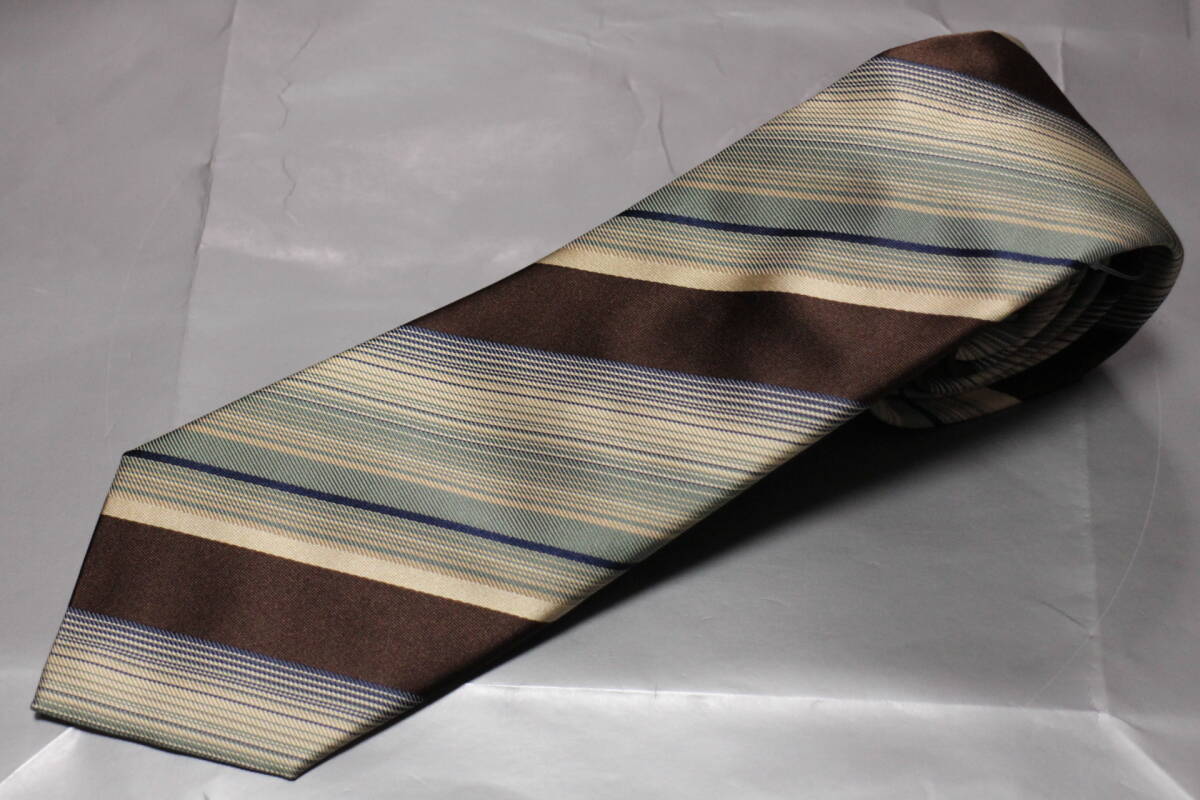 - フランコバッシ*阪急別注新品ネクタイ超モダン美麗ブラウン*シャンパン*ペールブルーレジメンタル極上マルチストライプハンドメイド