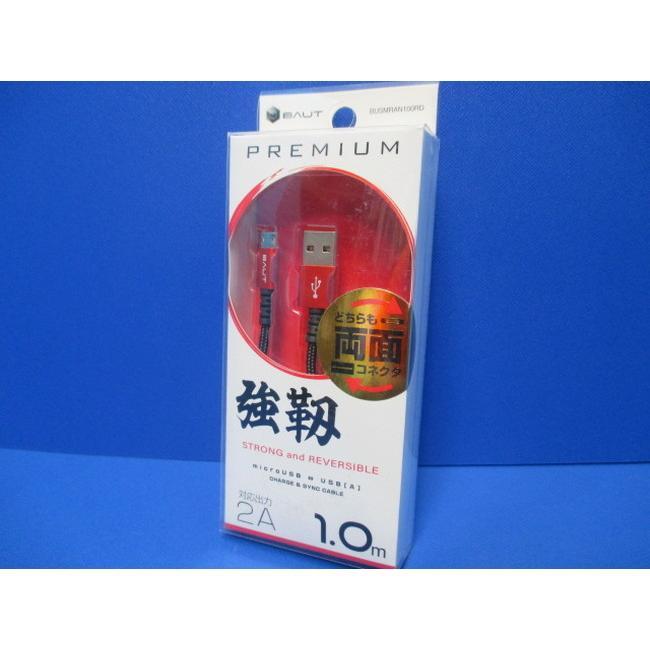 > バウト PREMIUM プレミアム 強靭 両面 microUSB Bタイプ ケーブル 2A レッド 1.0m 強靭メッシュケーブル 断線に強い高耐久仕様 ★u