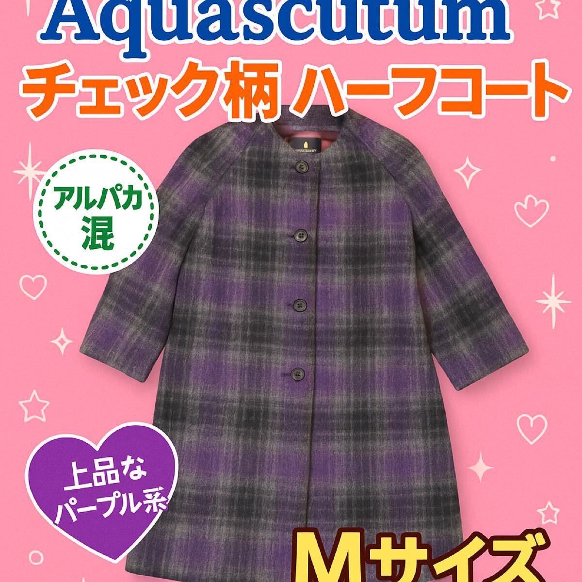 - Aquascutum アクアスキュータム チェック柄ハーフコート M 紫 アルパカ混