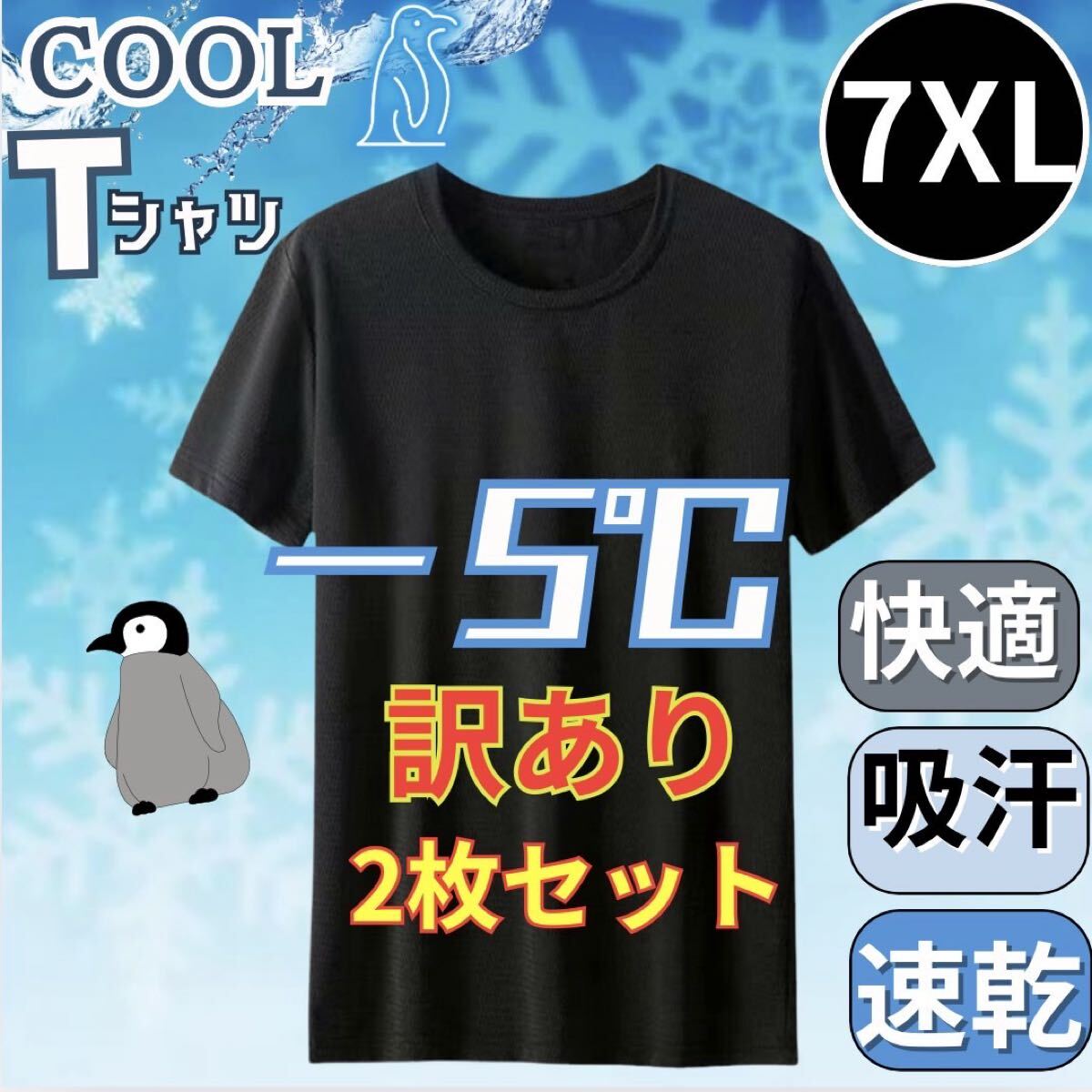 - 7XL Tシャツ 黒 接触冷感 ブラック カットソー トップス 半袖 ドライ 熱中症対策 無地 丸首 大きめサイズ メンズ スポーツインナー2枚