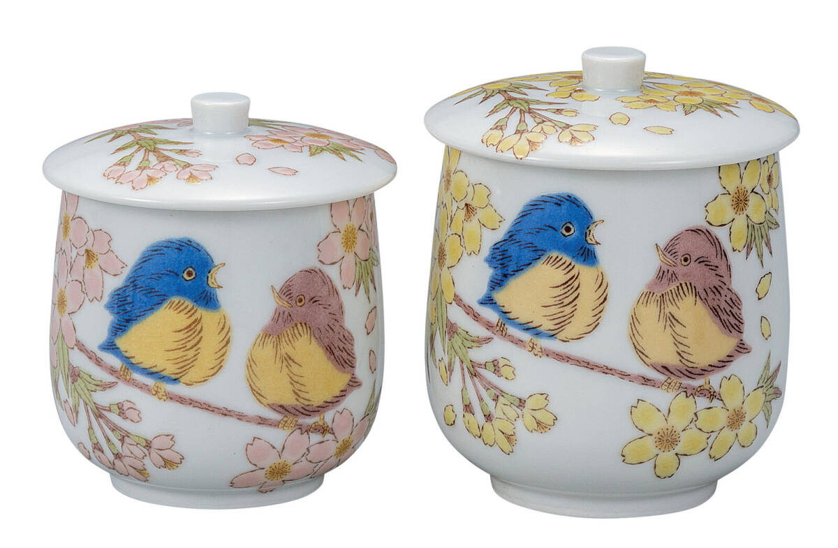 - 九谷焼! ☆花福雀・蓋付組湯呑☆ K9-807 汲出 煎茶 ほうじ茶 茶器 ギフト