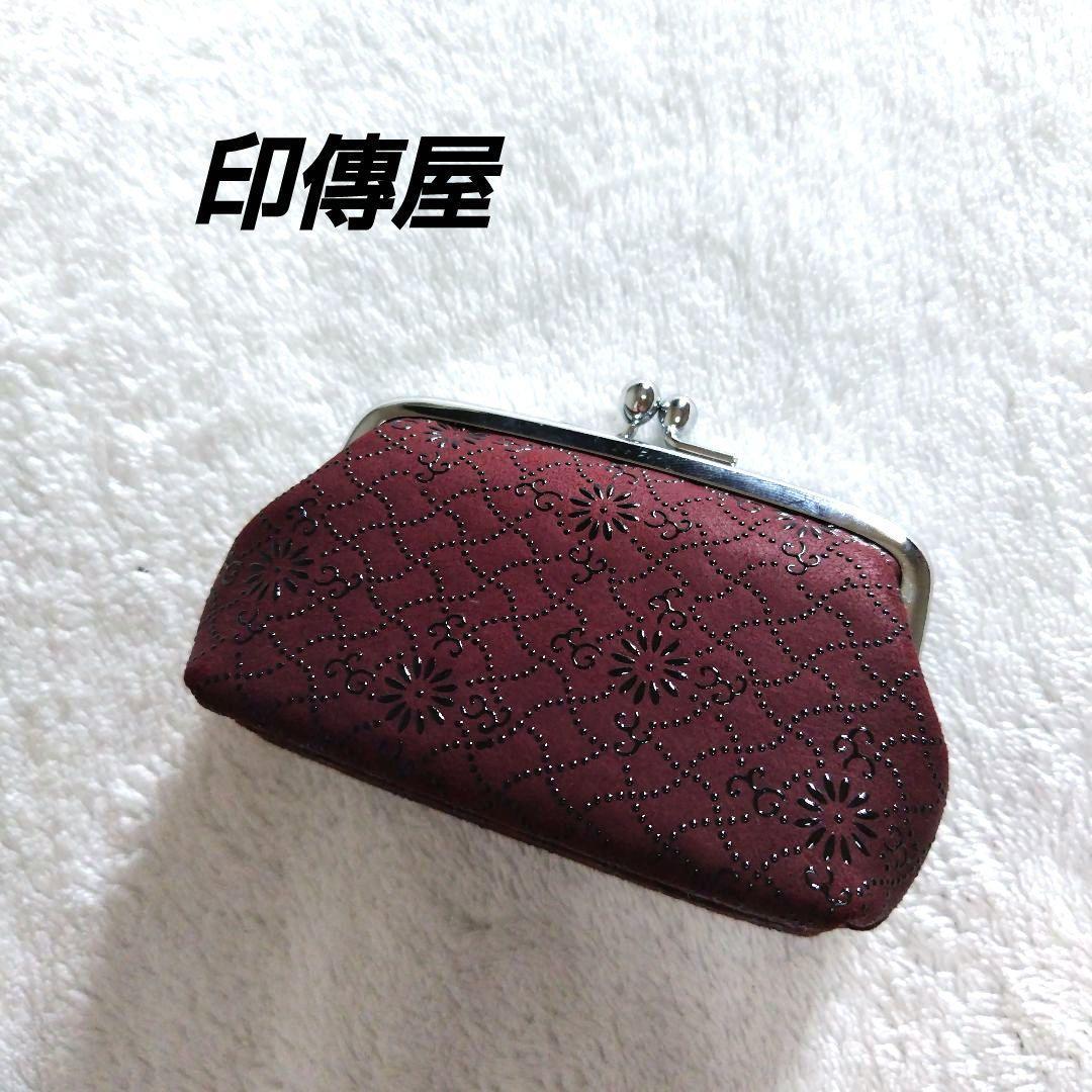 - 印傳屋 がまぐち小銭入れ コインケース 花柄 ミニ財布 和装小物 和柄 赤茶色 がま口 コンパクトウォレット INDENYA インデンヤ