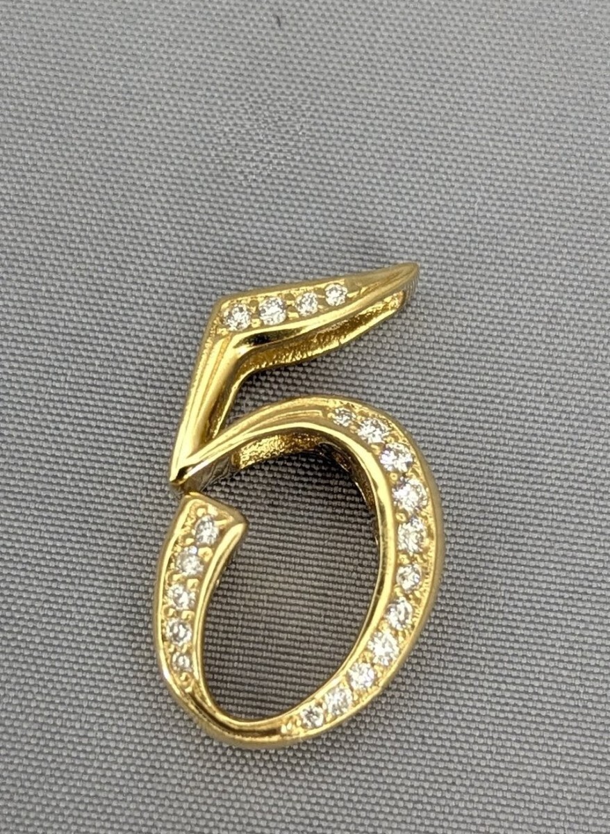 - K18 NOMBRE №5 Sサイズ ノンブル ペンダントトップ Y.NOMBRE.12.6.5.S ダイヤモンド 0.15ct 2.1g 中古 ゆきざき YUKIZAKI