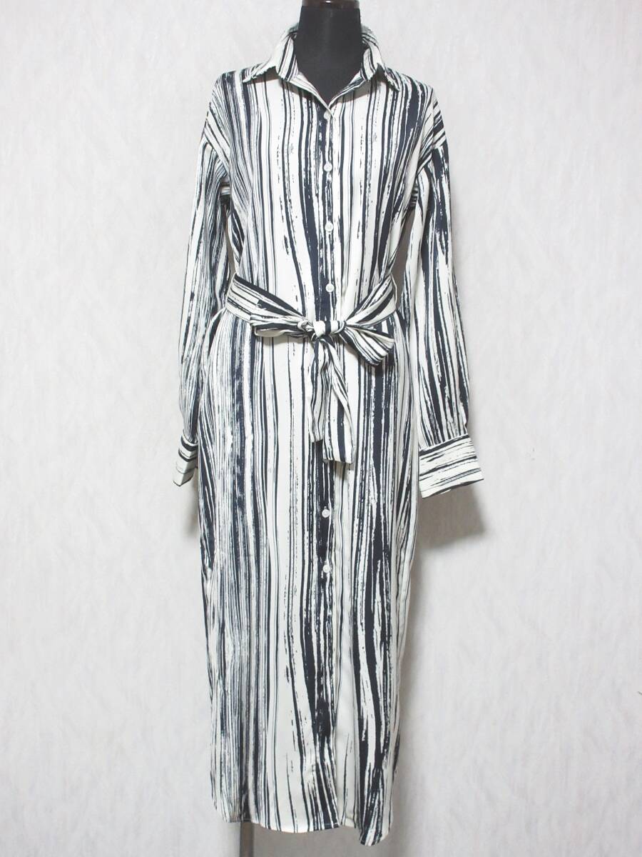 > BANANA REPUBLIC バナナリパブリック 24SS プリントシャツロングワンピース XS ホワイト ブラック yg7433