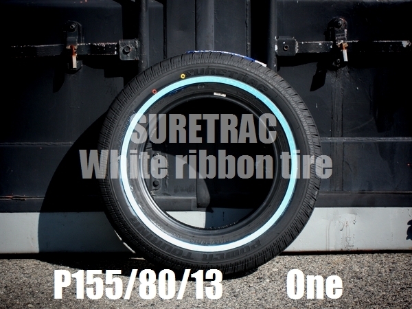 > ○ティスファクトリー○ シュアトラック SURETRAC POWER TOURING スキニー ホワイトリボン タイヤ 155/80R13 1本 ワイヤーホイールに最適