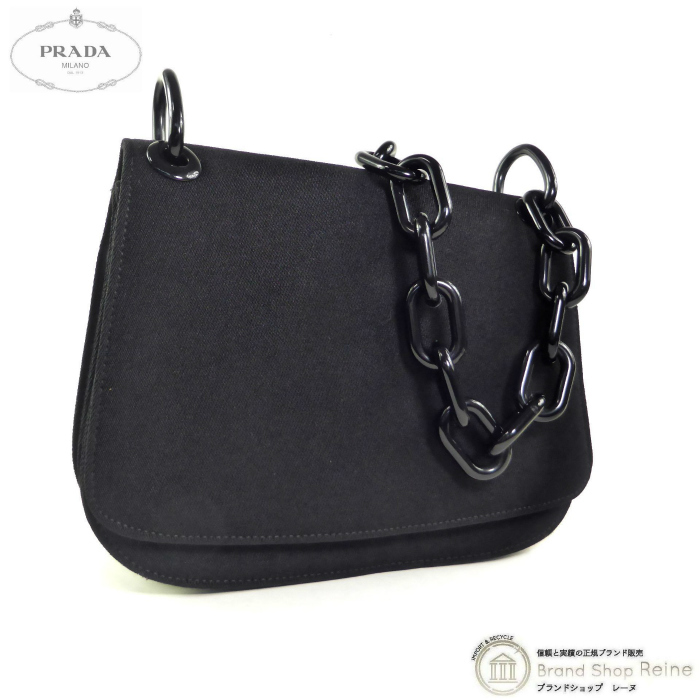 > プラダ (PRADA) ナイロン キャンバス プラスチックチェーン トライアングル 肩掛け セミショルダー バッグ B6622 ブラック(中古)