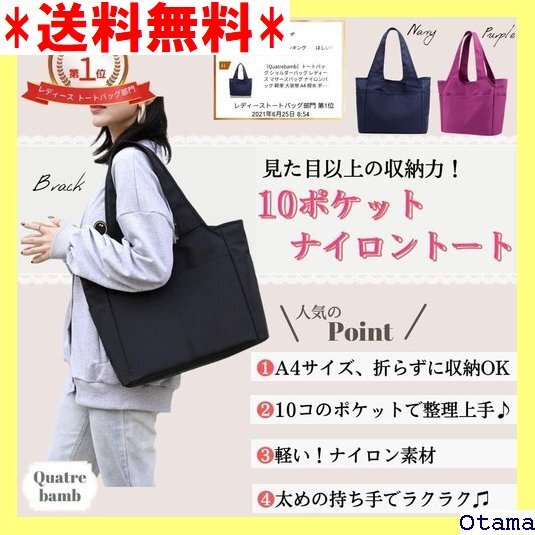 - ☆人気商品 Quatrebamb 10ポケット ナイロントートバッ a4 撥水 軽量 シンプル 通勤 ジムバッグ k002 86