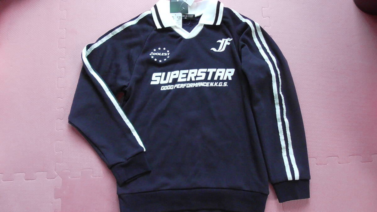 > 新品 150 長袖トレーナー 襟付き ライン袖 ユニフォーム風 スウェットシャツ 紺 裏起毛 あったか素材 小学生 男の子 冬物 140〜 送料無料