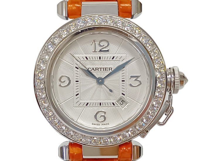 - Cartier カルティエ 腕時計 パシャ 32 18K 750 WG ref.2398 ダイヤベゼル ダイヤリューズカバー ホワイト文字盤 レディース 自動巻 稼動品