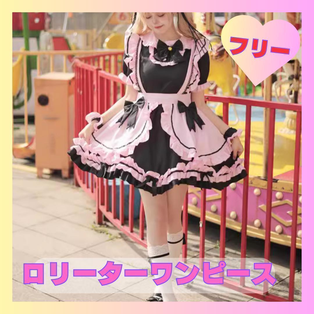 - ロリーターワンピース 甘辛 ガーリーピンク 黒 ブラック 黒色 1035メイド服