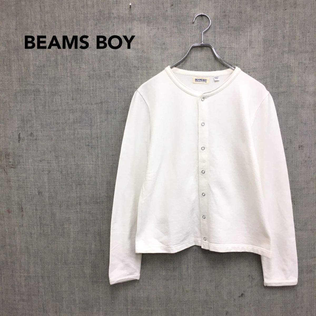 > 2K1949-G◆ BEAMS BOY ビームスボーイ スウェットシャツカーディガン スナップボタン クルーネック 薄手 無地 シンプル ◆ 白 綿