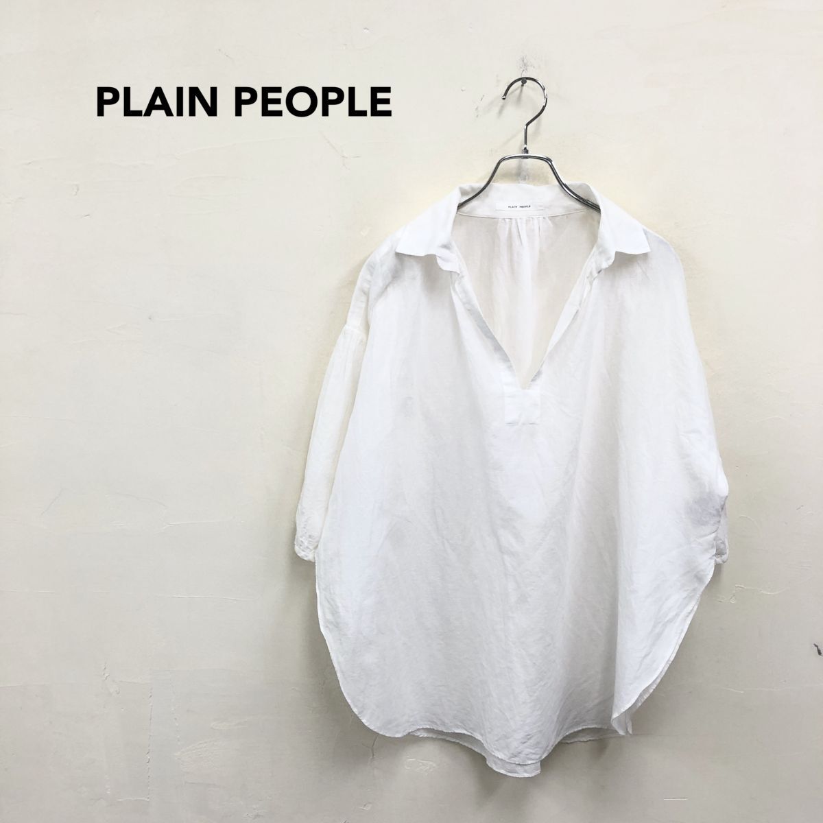 > 2K1843-K◆日本製 PLAIN PEOPLE プレインピープル 7分袖スキッパーブラウス◆size9 オフ白 無地 薄手 綿麻 カジュアル レディース