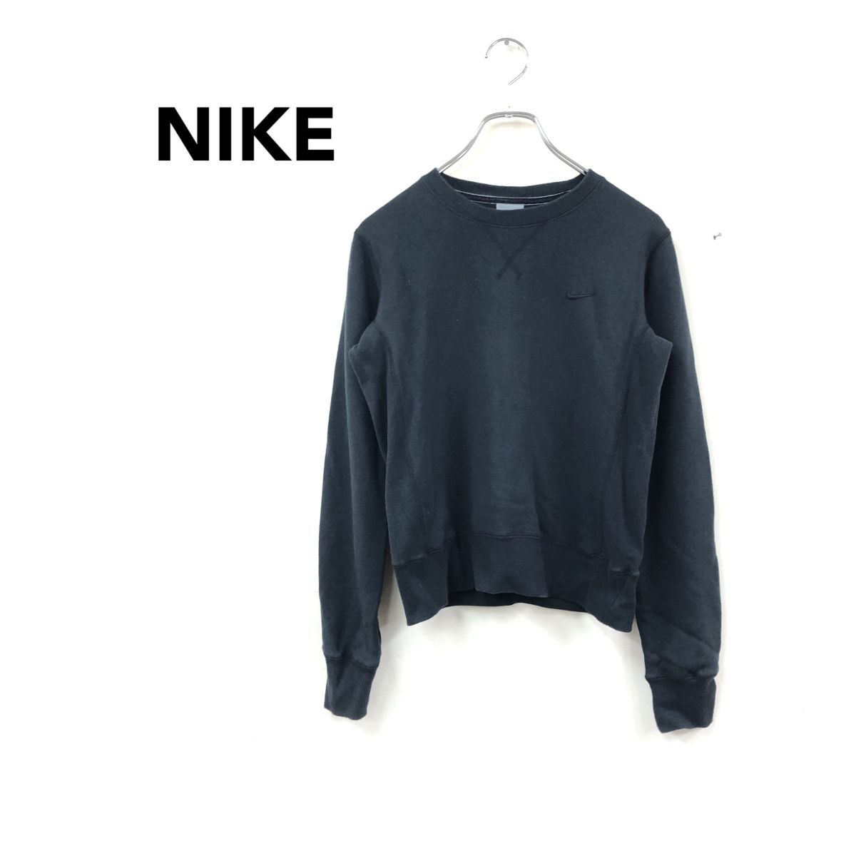 > 2K2012-Y◆NIKE ナイキ 長袖スウェットシャツ トレーナー Vガゼット クルーネック リブ 刺繍ロゴ レディース ◆sizeM ブラック 綿