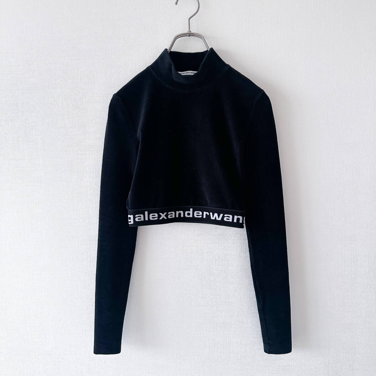 - 【美品】Alexander Wang アレキサンダーワン / クロップド ベロア トップス XXS 黒 ロゴ ブラック