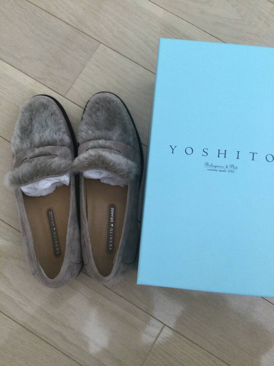 - 中古品 YOSHITOdeORANGE ヨシト 靴 ローファー ムートン 24㎝ グレー ベージュ 送料無料